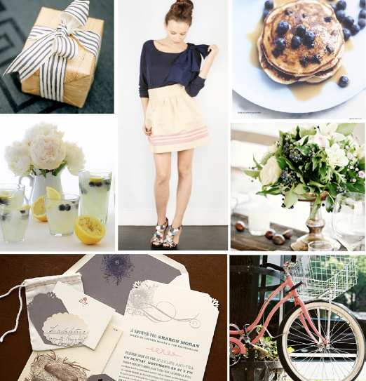 Ah, my favorite of all social events--brunch! There is just so much fun that can be had with this casual and low key occasion. I am currently loving the sophisticated yet playful feel of an inky blue, cream and pale pink palette for such an occasion.